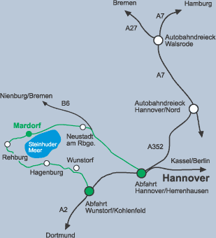 In Mardorf, an der Nordküste des Steinhuder Meers, steht unser Häuschen. Diese Wege gibt es zu uns: